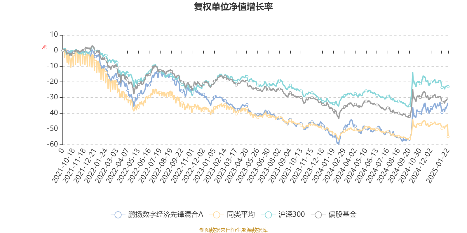 截至1月21日,鹏扬数字经济先锋混合A近三个月复权单位净值增长率为7.18%,位于同类可比基金60/646;近半年复权单位净值增长率为37.02%,位于同类可比基金20/645;近一年复权单位净值增长率为45.67%,位于同类可比基金11/633;近三年复权单位净值增长率为-24.23%,位于同类可比基金211/447。