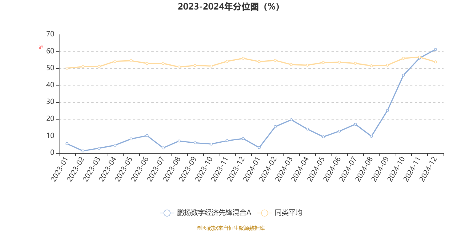 通过所选区间该基金净值增长率分位图,可以观察该基金与同类基金业绩比较情况。图为坐标原点到区间内某时点的净值增长率在同类基金中的分位数。